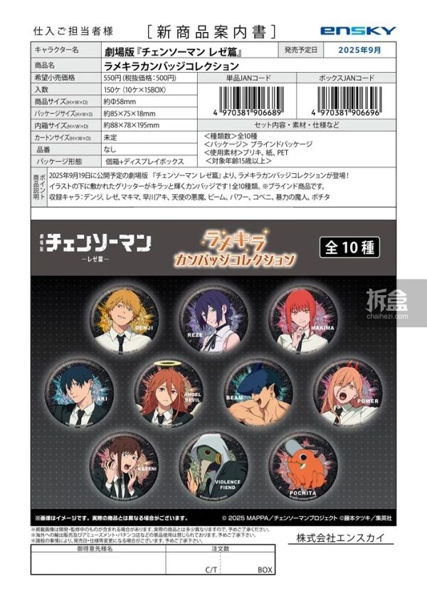 转载请注明源自拆盒网(拆盒网-潮流玩具新媒体)并附带原文链接:ENSKY 电锯人 角色印象 胸针收藏 端盒10款