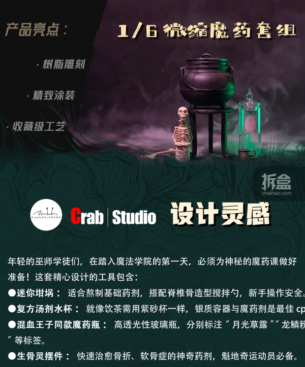 转载请注明源自拆盒网(拆盒网-潮流玩具新媒体)并附带原文链接:Crab Studio 魔药课微缩套组大全套 1/6可动人偶配件