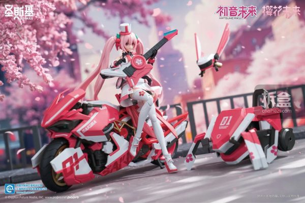 YOLOPARK圣斯基樱花初音未来粉色音爆摩托车可动人偶