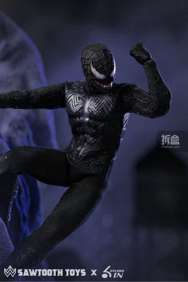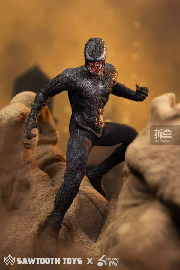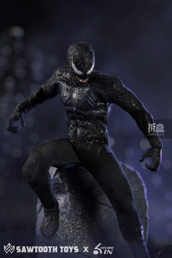 转载请注明源自拆盒网(拆盒网-潮流玩具新媒体)并附带原文链接:6inch studio x 锯齿 共生变体 毒液1/12 6寸可动人偶